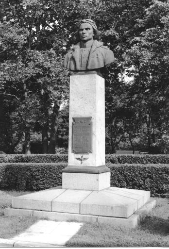 Федорову Е. П., памятникРубрикатор / Памятники Санкт-Петербурга/1917 – 1991 Адрес: Московский парк Победы, Аллея Героев Скульптор: Шапошников Сергей Дмитриевич (1909-1979) Архитекторы: Лукин Яков Николаевич (1909-1995) Кирхоглани Валериан Дмитриевич (1913-1994) Открыт 13 мая 1950 г. Материалы: бронза – бюст; гальванопластика – текстовая доска; гранит – постамент. Подписи: на плинте бюста слева: Скульптор Шапошников С.Д. Надписи: текст доски золочеными знаками: Указ/Президиума Верховного / Совета СССР о награждении / Героя Советского Союза / гвардии подполковника / Федорова / Евгения Петровича / второй медалью / «Золотая Звезда». / За образцовое выполнение / боевых заданий командования / на фронте борьбы с немецкими / захватчиками, дающее право/на получение звания/Героя Советского Союза, / наградить / второй медалью / «Золотая звезда» / Героя Советского Союза / гвардии подполковника / Федорова / Евгения Петровича, / соорудить бронзовый бюст и / установить его на постаменте / на родине награжденного. / Председатель Президиума / Верховного Совета СССР М. Калинин. / Секретарь Президиума / Верховного Совета СССР А.Горкин. / Москва, Кремль. 29 июня 1945 г. Московский парк Победы заложен в 1945 г. по проекту архитекторов Е. И. Катонина, В. Д. Кирхоглани, Т. Б. Дубяго, как «символ вечной славы, как живой памятник Народу-Герою». Центральная аллея парка — Аллея Героев — проектировалась архитектором В. Д. Кирхоглани как место установки бюстов дважды Героев Советского Союза, уроженцев города на Неве. Установка шести бронзовых бюстов героев была начата в 1948 г. Бюсты и накладные текстовые доски с изображением эмблем рода войск, в которых служили награжденные, изготовлены на заводе «Монументскульптура». Бюст Е. П. Федорова открыт в 1950 г. Размеры памятников дважды Героям Советского Союза: высота бюстов — 1,4 м, высота постаментов — 3 м. Персоны