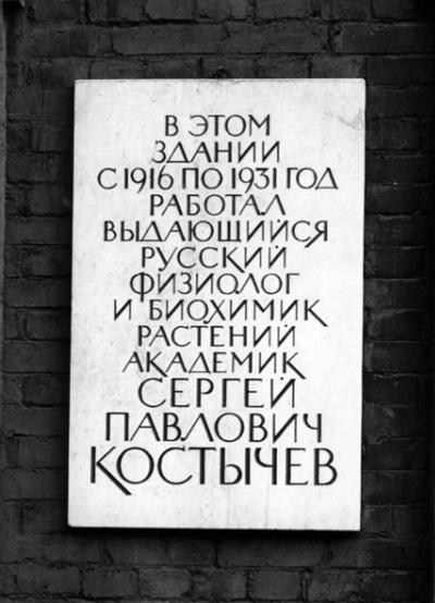 Костычеву С. П., мемориальная доска1977. Арх. Милорадович Т. Н. Мрамор. Университетская наб., 7. С.-Петербургский Государственный университет, кафедра ботаники. (Ф-97) Персоны