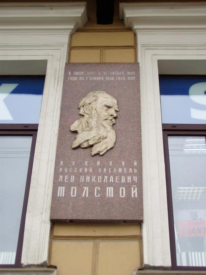 Толстому Л. Н., мемориальная доска1960. Арх. Егоров М.Ф., скульпторы Татарович В. И., Ястребенецкий Г. Д. Гранит, мрамор. Фонтанки реки наб., 38. (Ф-255) Персоны