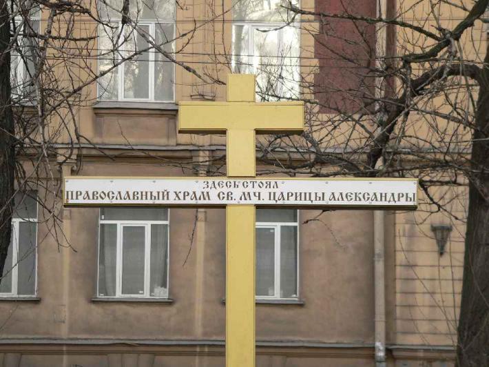Памятный крест, посвященный утраченной церкви Святой мученицы царицы Александры при образцовом детском приюте великой княгини Александры Николаевны