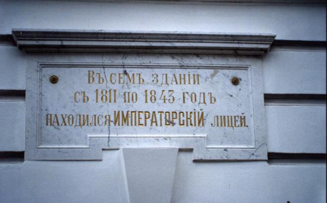 Pushkin, 1 Sadovaya Sreet, the Lyceum, a commemorative plaque