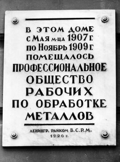 Блохина ул., 18, мемориальная доска1926. Мрамор. Адреса