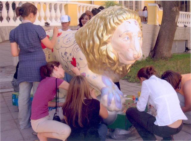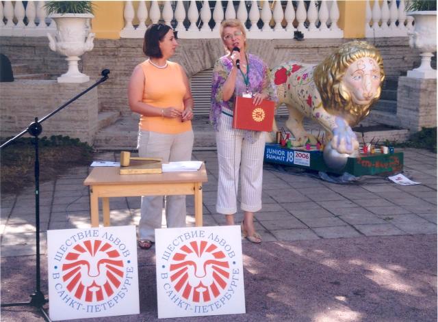 «ШЕСТВИЕ ЛЬВОВ» Благотворительная акцияПервый российский парад такого рода («Парад коров») прошел в августе 2005 в Москве. Организаторы смогли собрать более 300 тысяч евро. Самая высокая цена в 38 000 евро была предложена за корову, расписанную Андреем Макаревичем. Четыре коровы с этого аукциона – подарок В. Н. Батурина – можно увидеть в С.-Петербурге, в Центральном музее почвоведения им. В. В.Докучаева. В «Шествии львов» участвовали 24 «льва», расписанные как маститыми художниками, так и непрофессионалами. Фигуры львов для акции были выполнены из пластика, прототипом 19-ти из них послужили первые чугунные сторожевые львы в С.-Петербурге – львы у Елагиноостровского дворца, пять других напоминали львов у дачи Г. А. Кушелева-Безбородко (Свердловская наб., 40). «Солнечный лев», расписанный участниками «Юношеской восьмерки» (молодежный форум, проходивший в г. Пушкине накануне саммита «Большой восьмерки»; в нем участвовали по восемь школьников в возрасте от 13 до 17 лет от каждой страны-члена «Большой восьмерки»), был приобретен компанией «Открытые технологии» на благотворительном аукционе 14 июля 2006 за 1 млн. 300 тыс. руб. Средства были перечислены на счет Научно-практического центра по оказанию помощи ВИЧ-инфицированным детям и беременным женщинам при ФГУ «Республиканская клиническая инфекционная больница». На Пасхальном аукционе 13 апреля 2007 в Елагиноостровском дворце были проданы еще три льва на общую сумму 2,5 млн. рублей. Вырученные деньги бвли направлены в благотворительные организации: «Детский хоспис», «Перспективы» и «Тёплый дом». 14 февраля 2008 еще один лев был приобретен друзьями и коллегами председателя Совета Федерации Сергея Миронова и торжественно вручён ему на 55-летний юбилей. Вырученные 150 тысяч рублей были перечислены на счёт Благотворительного фонда помощи детям «Тёплый дом». Сайт: www.leospb.ru П. В. Беспрозванная Июнь 2009 г. Авторы
