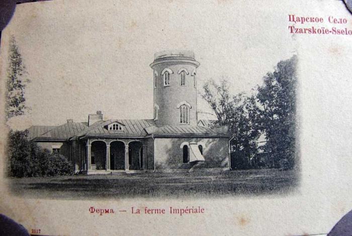 The Farm (an ensemble of the Alexander Park)The Farm stone constructions, having been now, were built by the architect Menelaws during 1817-1822 in the same English-Gothic forms as other park pavilions. These constructions were survived until the present days without major changes, only wooden construction of the fodder yard located at the western side. One- and two-story buildings connected with a fence with some gates form a picturesque ensemble. Metallic décor, yellowish limestone, red brickwork with white pointing and white plaster window casings and sandriks were used in the architectural design. In the center between two entrance gates from the Farm road there was a two-story house of a supervisor , the façade of the house attracts the attention by two projection octahedral towers-buttresses wich are crowned with a fronton with a merlon. Different offices, apartments of a vet and farmyard workers were placed in one-story wings. In the vast yard there is a cruciform-plan building of a cow-shed with 84 stalls (now the cow-shed is used as a stable). In a corner there is a compound-plan wing intended for an ice-house and dairy with separators, refrigerators and other equipment. The wing is crowned with the fifteen-metre high round tower with the watch ground. Yakovkin in his guidebook wrote about the watch ground function , “It’s quite pleasant in bright morning to sit here and read or think or watch different views and especially to observe something using a telescope”. On the second floor there was a room for rest. Near the tower inside the Farm fence there was a wing for imperial visitors, this wing stood out the richer decor of facades then other buildings of the complex. An cast-iron trellis terrace, used to entwine with ivy, joined with the wing outside. A beautiful Gothic Gate joined from the other side. In the wing there were two lounges, dining room, kitchen and there were four sofa rooms for rest in the mezzanine. The light maple furniture was decorated with the Gothic carving according to Menelaws’s drawings. Interiors were decorated with the Alexander time etchings with rural views of Switzerland and the Netherlands, portraits of Alexander I and his wife Yelizaveta Alekseyevna. The imperial Farm was “a successor” of the former farm-yard that had been in Tsarskoye Selo since the first years of its foundation. Establishing the new economy Alexander I followed the advice of Empress Maria Fiodorovna, his august mother, who established the similar economy in the Pavlovsk Park earlier. According to the Emperor’s order the Tsarskoye Selo Farm workers were sent to the Empress’ farm for training. In 1822 sixty two cows and bulls of Kholmogorean and Cherkassean breeds just as European breeds – Tyrolese, Hungarian, Swiss, English and Holland ones- as well as a hundred merino sheep from Silesia were brought into the Tsarskoye Selo Farm. But only thoroughbred Kholmogorean cattle could settle down there. Afterwards breeds were chosen with the experimental way. The production was supplied for Emperor court, surpluses were sold. Farms worked under the especial supervision of the Tsarskoye Selo governor Ya.V. Zakharzhevsky. After 1865 Grand Duke Nicholas Nicholayevich became a trustee of the farms. After the nationalization of emperor’s property the Farm and a large part of the Alexander Park with constructions, located there, were passed to the Agronomical Institute (later the Agricultural Institute, now it is the Agrarian University). The origin of the new toponim “The Farm Park” is connected with using the Farm complex as the Institute training economy. The well equipped winter stone cow-shed with cast-iron drinking bowl and other buildings used for the origin purpose during the long time. The stable of the Tsarskoye Selo Museum Preserve, where thoroughbred horses are placed now here. The horses are used for coaching in summer and sledging in winter. Authors