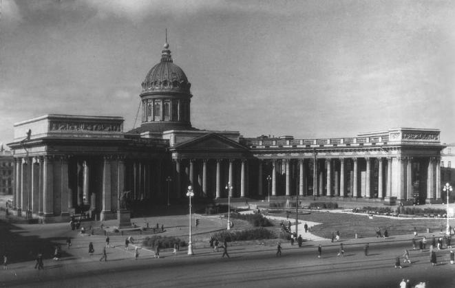 КАЗАНСКИЙ СОБОР, собор иконы Казанской Божией Матери (Казанская пл., 2), пам. архитектуры классицизма. В 1733-37 на этом месте выстроена кам. 3-придельная ц. Рождества Богородицы с высокой колокольней (арх. М. Г. Земцов), куда была торжественно перенесена икона Казанской Божией Матери (кон. 16 в.). В 1773 в этой церкви венчался цесаревич Павел Петрович; здесь отмечались мн. победы рос. армии. В кон. 18 в. храм получил статус собора. В 1801-11 на его месте воздвигнуто новое здание с большим куполом, портиками и полукруглой коринфской колоннадой (арх. А. Н. Воронихин). Стр-во обошлось казне в 4,7 млн руб. В 1813-14 в нем были размещены трофеи, захваченные рос. армией в ходе Отеч. войны 1812 и кампаний 1813-14, в 1813 в левом приделе был погребен фельдмаршал М. И. Кутузов и храм стал восприниматься как пам. Отеч. войне 1812. В 1837 на площади перед К. с. открыты памятники Кутузову и М. Б. Барклаю де Толли. В отделке интерьеров и в украшении К. с. участвовали ведущие рус. художники и скульпторы: рельефы на фасаде исполнили И. П. Мартос, И. П. Прокофьев, Ф. Г. Гордеев, статуи - С. С. Пименов, Мартос, В. И. Демут-Малиновский, образа - В. К. Шебуев, А. Е. Егоров, А. И. Иванов, В. Л. Боровиковский и др. Иконостас создали А. Леблон и Ф. Кретьен, лепку выполнили Ф. Торичелли и Б. Медичи, царские врата отлил из серебра П. Теннер. Для иконы Казанской Божией Матери был сделан новый зол. оклад, украшенный драгоценными камнями. Отделочными работами, продолжавшимися до 1829, руководил арх. А. А. Монферран. В 1834-36 гл. иконостас отделан серебром, отбитым казаками у неприятеля в 1812 (мастер Ж. Герен, по рис. арх. К. А. Тона), новые иконы исполнили худ. В. К. Сазонов и Ф. П. Брюлло. Тогда же худ. Ф. А. Бруни, П. В. Басин и К. П. Брюллов написали большие алтарные образа. В 1865 на апсиде К. с. помещен наружный образ Казанской Божией Матери (худ. И. А. Тюрин). В 1921 освящен "пещерный" придел священномученика Ермогена. С 1743 в престольный праздник (30 авг. ст. ст.) от К. с. (позднее от Исаакиевского собора) до Александро-Невской лавры шел крестный ход (самый большой в СПб.), 25 дек. (ст. ст.), день изгнания Великой армии имп. Наполеона I из России, отмечался особым благодарственным молебном. 28.10.1893 в К. с. отпевали П. И. Чайковского. В 1913-18 настоятелем К. с. был протоиерей Ф. Н. Орнатский. С 1870 в приходе действовало благотворит. об-во, содержавшее школу-приют, бесплатную столовую, богадельню, дом дешевых квартир, дачу для бедных детей под Сестрорецком. В 1922 церк. ценности, в т. ч. серебр. отделка иконостаса, были конфискованы сов. властями. В 1932 К. с. обращен в Музей истории религии, часть убранства передана в гос. хранилища, икона Казанской Божией Матери с 1940 хранилась в Князь-Владимирском соборе. В 1950-56 проведена реставрация интерьера, в 1963-68 - фасадов (арх. А. Э. Гессен). В 1991 К. с. возвращен епархии и стал действующим, в 1998 освящен по полному чину, в 2000 стал кафедральным. От К. с. происходят наименования Казанского острова, Казанской площади, Казанского моста и Казанской улицы. Лит.: Антонов В. В., Кобак А. В. Святыни Санкт-Петербурга: Ист.-церков. энцикл. СПб., 1994. Т. 1. С. 83-87; Казанский собор. СПб., 2001. В. В. Антонов.