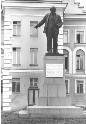Ленину В.И., памятник (Обуховской Обороны пр.)Рубрикатор / Памятники Санкт-Петербурга/1917 – 1991 Адрес: Обуховской Обороны пр., 51, Невский машиностроительный завод Скульптор: Харламов Матвей Яковлевич (1870-1930) Открыт 8 августа 1926 г. Материалы: бронза – скульптура; гранит серый, кованый – постамент; мрамор белый – текстовые доски. Надписи: тексты досок врезными золочеными знаками с лицевой стороны: Любимому / вождю и учителю / рабочего класса / 8 августа 1926 года; с тыльной стороны: От рабочих и служащих / завода / В. И.Ленину / 22 апреля 1870 21 января 1924 Решение о сооружении памятника В.И. Ленину принято на общем заводском митинге 20 ноября 1925 г. Памятник сооружен на средства, собранные рабочими завода. Бронзовая скульптура отлита на заводе «Красный Выборжец». Это один из первых памятников вождю в нашем городе. Высота скульптуры — 3 м, высота постамента — 3,5 м. Персоны