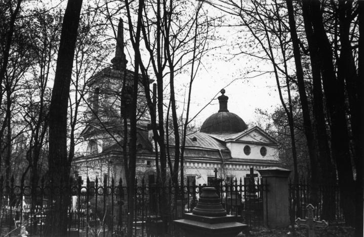 Церковь ВОСКРЕСЕНИЯ СЛОВУЩЕГО на Волковском кладбищеВ 1813 церковь была отремонтирована и расписана Богдановым, после этого 25 октября архимандрит Филарет (Дроздов) освятил ее снова. Завершение ансамбля приходится на 1832–1834, когда П. Ф. Воцкий возвел церковную ограду с примыкающими домами. Одновременно он сделал каменным деревянный верх колокольни. Ее Г. И. Карпов перестроил в 1871–1872, устраивая под храмом склепы. Последний ремонт и расширение здания провел в 1912–1914 арх. В. Н. Бобров. Среди множества икон в церкви было две иконографически редкие: Павская и Кульмская Божия Матери. Из религиозных картин выделялась „Встреча Марии и Елизаветы“ акад. Н. А. Майкова. В ризнице сохранялась серебряная утварь XVIII века. В 1846–1854 настоятелем храма был о. Константин Петрович Добронравов (позже ставший епископом), автор популярного „Утешения в смерти близких сердцу“. В июле 1919 был образован приход. Храм закрыли 28 января 1936, через полгода после организации музея-некрополя „Литераторские мостки“, которому и передали здание. Ныне в нем – выставочный зал Музея городской скульптуры. В некрополе „Литераторские мостки“ похоронены многие знаменитые люди: В. Г. Белинский, Н. А. Добролюбов, И. А. Гончаров, И. С. Тургенев, Д. В. Григорович, Н. С. Лесков, А. И. Куприн, А. С. Попов, Д. И. Менделеев, Н. Н. Миклухо-Маклай. Архивные источники РГИА. Ф. 797. Оп. 40. Д. 102; Ф. 799. Оп. 26. Д. 1064. ЦГИА СПб. Ф. 19. Оп. 1. Д. 13991. Литературные источники Аладьин Е. В. Православное Волковское кладбище. СПб., 1847. ИСС. 1883. Т. 7. С. 506-507; 1885. Т. 10. С. 41-108. Вишняков Н. П. Историко-статистическое описание Волсковского православного кладбища. СПб., 1885. ПАЛ. С. 304. ИК. С. 315-354. Черепенина, Шкаровский. 1999. С. 291-293. КЗ. 2001. Вып. 8. С. 78-90. Периодика ВПГ. 1887. № 164, 258; 1901. № 105. ПЛ. 1887. № 133. Колокол. 1914. № 2456. Авторы