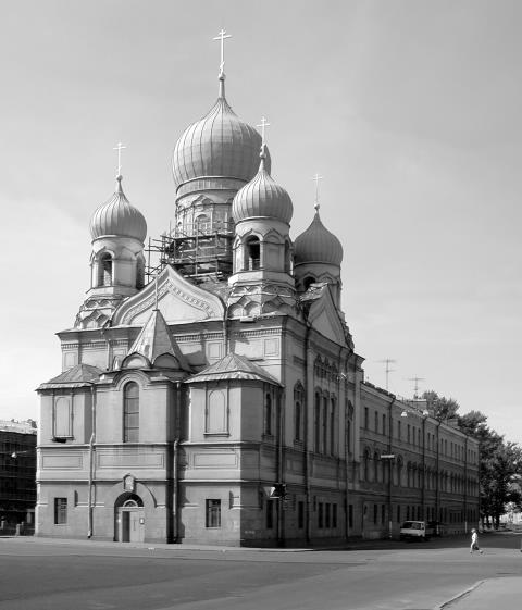 Церковь сщмч. ИСИДОРА ЮРЬЕВСКОГО при Православном эстонском братствеПервый взнос на эстонский храм сделал о. Иоанн Кронштадтский. Уже в 1901 член братства арх. А. А. Полещук составил эскиз, а 23 августа 1902 был утвержден окончательный проект трехпридельной бесстолпной церкви на 720 человек с примыкающим домом для школы с общежитием, залом для бесед, книжным складом и библиотекой. Строительство началось с церковного дома, и руководил им сам зодчий. Сперва, по обычаю, 30 марта 1903 была освящена деревянная часовня, а 21 декабря епископ Гдовский Константин, председатель братства, освятил при участии о. Иоанна Кронштадтского временную церковь в двусветном зале для бесед. Еще раньше, 24 августа, он заложил пятиглавый каменный храм, который возводился на всероссийские пожертвования. Для временной церкви иконостас и образа исполнило Общество взаимопомощи русских художников. В ней 7 февраля 1904 был освящен Серафимовский придел, один из первых в городе. В следующем году стены здания были доведены до сводов, но затем деньги иссякли, и лишь 50 тыс. руб., пожертвованные председателем строительного комитета дейст. стат. сов. Иваном Михайловичем Богдановым, помогли довести строительство до конца. Государь дал 3 тыс. руб. Митрополит Антоний 23 сентября 1907 освятил главный придел; через три дня настала очередь придела прп. Серафима, устроенного на средства все того же Богданова, брат которого финансировал отделку нижней Никольской церкви, освященной 30 марта 1908 епископом Самарским Константином. Она находилась на первом этаже, рядом с Никольской часовней. Последний, правый придел апп. Петра и Павла, освященный 4 мая 1908, отделывала на свои деньги Анна Николаевна Макеева. Служили в церкви каждый день на эстонском и церковно-славянском языках. После каждой всенощной и литургии устраивались духовные беседы, сопровождаемые общенародным пением. Хором часто руководил артист Нийта. Благодаря пожертвованиям, фирмой Франка был сделан запрестольный витраж, в магазине Жевержеева куплены напрестольное Евангелие, хоругви и ризница. Часть утвари изготовила фирма П. И. Оловянишникова. В стиле барокко с множеством позолоты в мастерской П. С. Абросимова исполнены по рисунку Полещука трех- и двухъярусные иконостасы, образа для которых написал В. Т. Перминов. Престолы в 1910–1912 мастерской К. О. Гвиди были облицованы белым каррарским мрамором. Святынь в храме не было – только в 1910 из дворцовой церкви вел. кн. Павла Александровича (см. церковь мц. цар. АЛЕКСАНДРЫ при дворце вел. кн. Павла Александровича) была передана иконка с изображением прп. Серафима, написанная на части камня, на котором он тысячу дней простоял на молитве. Эстонское братство, во главе которого все время находился настоятель прот. Павел Кульбуш (будущий новомученик Платон, епископ Ревельский), много делало для распространения Православия среди столичных эстонцев: устраивало в своем зале беседы для взрослых и чтения для детей, раздавало книги, содержало школу, убежище для безработных девушек. Торжественным архиерейским богослужением и крестным ходом 5 мая отмечались годовщины его существования. В 1923–1927 в здании работал Богословский институт епархии. Церковь закрыта 25 февраля 1935; настоятель прот. Александр Пакляр через три года расстрелян. После сильной переделки внутри здание долгие годы было занято живопис