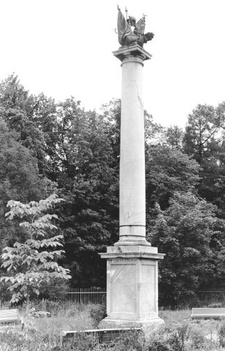 The Crimean (Siberian) Column, a monumentThe painter: Gavriyil Ignatyevich Kozlov (1738-1791) The monument was opened in July 1777. The sculptor decoration was set on the obelisk top in 1785. Materials: Gornoshitsky light gray polished marble was used for column, the foundation was made of gray granite, the sculptor decoration on the top was made of bronze. The Crimean (Siberian) Column is devoted to the annexation of the Crimea according to the Peace Treaty of Küçük Kaynarca which finished the Russo - Turkey War of 1768-1774. Constructing the column was connected with the constructing of the complex of the Reserved yard and guard-houses to the design of the architect V.I. Neyelov on the territory outside of the Catherine Park. A marble column was decided to set in the square in front of buildings of the guard-houses according to the request of Catherine II. A monolith for making the column was brought from Yekaterinburg. Firstly the column was named “Siberian” by the place of extraction of marble. The complete decoration of the column was made in workshops of the office of building the St. Isaac’s Church. In March 1777 the column was brought into Tsarskoye Selo, in July it was placed on the foundation. For a long time there was not a sculptor decoration on its top. After the legal implementation of the joining of the Crimea to Russia in 1783 the artist G.I. Kozlov got the order to create the decorative symbol composition “Trofei” (“Trophies”). The composition, which included Turkish flags, horse-tails, arms, was cast at the Petersburg State Bronze Factory. On 22 October 1785 the composition was set on the top of the column. The column was named Crimean. The original architect surrounding of the monument was completely lost. The monument high is 16.57 metres, the column high is 10.55 meters, the bronze composition high is 2.55 metres. Persons