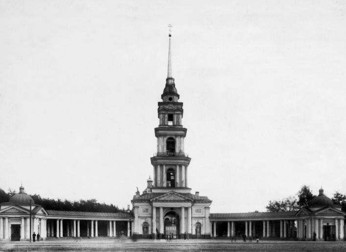 Церкви ВОЗДВИЖЕНИЯ ЧЕСТНОГО И ЖИВОТВОРЯЩЕГО КРЕСТА ГОСПОДНЯ (Ямская Иоанно-Передтеченская), БОЖИЕЙ МАТЕРИ ТИХВИНСКОЙ и равноапп. КИРИЛЛА И МЕФОДИЯВ 1718–1719 сгоревшую часовню сменила церковь Рождества Иоанна Предтечи с Никольским приделом, тоже деревянная, но и она простояла недолго – до пожара в ноябре 1730, после чего ямщики перенесли с Пороховых небольшую Ильинскую часовню (см. приходские церкви ИЛИИ и вмц. ПАРАСКЕВЫ ПЯТНИЦЫ при Охтинском пороховом заводе), освященную 25 февраля 1731 как церковь. Через три года появился Никольский придел, которым с 1743 пользовался лейб-гвардии Кирасирский полк. Церковь быстро обветшала – хотя действовала до 1756 – и служба в ней шла „с немалым опасением“. Потому в 1739 под смотрением И. Я. Шумахера началось возведение каменного храма размером 20 на 10 саж., и 24 июня 1749 архиепископ Феодосий освятил его главный, а в июне 1751 – боковые приделы. Этот храм был выстроен в традициях позднего барокко. Прошло много лет, и в 1820 храм отремонтировали, но в 1840 его все же было решено снести, чтобы по проекту В. Е. Моргана выстроить новый на 2500 человек „в греческом стиле… согласно со стилем существующей колокольни“. Проект, однако, вышел чересчур дорогим, и, начиная с 1848, арх. Е. И. Диммерту пришлось заняться расширением старого здания, возвести на нем купола и заново отделать интерьер. После этого митрополит Никанор 2 декабря 1851 освятил главный придел, тогда как освящение двух боковых – свт. Николая и Рождества Иоанна Предтечи – состоялось в июне 1852. Иконостасы в них поставили прежние, образа в главном исполнил иконописец Коротков. Лепку сделал Т. Дылев, бронзовое паникадило – Нерике. Так как прежняя Воздвиженская церковь была холодной, то 20 июня 1764 позади нее была заложена в стиле барокко теплая Тихвинская, освященная 14 декабря 1768 и украшенная небольшим куполом. На свои средства купец Иван Ильич Меньшой позже устроил в ней дополнительный придел свт. Иоанна Златоуста – он освящен 18 февраля 1800. Вышеупомянутый Морган, начиная с 1842, расширил это здание, создав освященные 24 июня 1844 приделы свт. Николая и благ. кн. Александра Невского. Образа в них написал В. А. Фаддеев. Стройная ампирная колокольня ансамбля, выходящая на проспект, строилась целых семь лет (1805–1812) по проекту А. И. Постникова. В нишах стояли статуи апп. Петра и Павла, Веры и Надежды. Дорическая колоннада соединяет колокольню с угловыми часовнями. На ее нижнем ярусе 8 февраля 1873 митрополит Исидор освятил устроенную за несколько месяцев небольшую церковь равноапп. Кирилла и Мефодия, деньги для которой дал староста купец Иван Ильич Шигалев. Через два года И. И. Демин „возобновил и добавил“ колокольню. В 1878–1880 Тихвинская церковь и ограда с часовнями были капитально отремонтированы. Слева от Воздвиженской церкви в 1902 было сооружено особое деревянное здание на 2000 человек, где служили по праздникам и в Пасху. Кроме часовен в ограде, у храма были еще две: первая – в ампирном стиле на Лиговке, около Расстанной улицы, выстроенная по проекту В. Ф. Пруссака купцом Н. Алексеевым в 1893–1894 в память спасения Цесаревича в Отсу, перед которой в Егорьев день кропили святой водой ямщицких лошадей, и вторая – в 2 верстах, около железной дороги, куда 25 июня шел крестный ход. Ее возвели в 1895–1896 крестьяне Ямской слободы, чтобы отметить спасение Александра III в Борках. Другой крестный ход с во