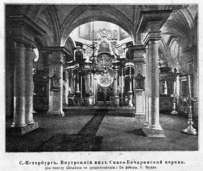 Церковь СПАСА ПРОИСХОЖДЕНИЯ ЧЕСТНЫХ ДРЕВ (Спасо-Бочаринская)Первая деревянная церковь „при компанейских домах“, у перевоза через Неву, была выстроена в 1741–1745 по проекту И. Я. Шумахера. Она была уничтожена пожаром в мае 1761. В 1749 на средства купцов Дмитрия Лукьянова и Федора Солодовникова было начато возведение двухэтажного каменного храма с деревянным куполом на высоком восьмерике. Нижняя церковь во имя Тихвинской Божией Матери с приделом сщмч. Антипы освящена 7 февраля 1752 архиепископом Сильвестром. После расширения 20 июня 1761 освящен Трехсвятительский придел и 4 ноября 1767 – верхняя Спасская церковь. В это время около храма существовало небольшое кладбище. В 1828 к неказистому зданию была пристроена паперть, через четыре года над входом появилась колокольня. В 1840 по проекту А. Я. Андреева на углу были выстроены каменная ограда и часовня. Последнюю переделали четверть века спустя при ремонте здания. Тогда же верхнюю церковь превратили в теплую. Ее прекрасный барочный иконостас при этом переделки или замене не подвергался. Нижнюю церковь в 1880–1881 капитально отремонтировали, и в ней поставили одноярусный иконостас из фаянса, сделанный на фабрике Михаила Савиновича Корнилова, местного прихожанина. Это был первый в стране иконостас такого рода, который позже вызвал подражания. В 1889 отремонтировали верхнюю церковь. Все последующие работы были, в основном, связаны с именем арх. Н. Н. Еремеева: в 1901–1902, к юбилею, он капитально отремонтировал интерьер и возвел отдельную трехъярусную колокольню, где внизу на средства купца Авраама Андреевича Денисова, долголетнего старосты, устроил освященный в конце 1906 придел прп. Авраамия Затворника со склепом. В 1908–1909 на углу Минеральной и Тимофеевской улиц была построена каменная Богословская часовня, заменившая деревянную. Еще раньше, в 1901–1902, на углу Безбородкинского проспекта и Тимофеевской улицы была выстроена по проекту Ю. Рейнера часовня св. Александра Невского. Кроме того, к храму была приписана церковь на Богословском кладбище (см. церковь ап. и ев. ИОАННА БОГОСЛОВА на Богословском кладбище) и Успенская часовня на Финляндском вокзале. Хотя архитектура храма не отличалась выразительностью, он был интересен своим старинным иконостасом, утварью и уникальным образом, который, по преданию, принадлежал Петру I и был написан по случаю взятия Азова. Местным почитанием пользовались две иконы: Тихвинской Божией Матери и сщмч. Антипы. С 1873 при церкви работало благотворительное общество, содержавшее богадельню, приют и школу и имевшее свой домовый храм (см. церковь прп. НИКИТЫ МИДИКИЙСКОГО при богадельне и убежище для детей им. Никиты и Марии Козьминых). В 1915–1926 настоятелем был о. Павел Васильевич Раевский, который кончил, кроме Духовной академии, Археологический институт. Он с ноября 1916 возобновил богослужения на финском языке, подготавливая создание в столице отдельного прихода для 4000 православных финнов. В приходе устраивались три крестных хода: 7 июля – на патронный завод, 1 августа – к Новому арсеналу для водосвятия, 15 августа – по округе. Церковь закрыта в марте 1932 и тем же летом разобрана; на этом месте разбит сквер. Две иконы отданы в Сампсониевский собор, остальные – в Госфонд и Русский музей. Архивные источники РГИА. Ф. 218. Оп. 4. Д. 1073; Ф. 796. Оп. 42. Д. 190; Оп. 182. Д. 1266; Оп. 187. Д. 2721; Оп. 189. Д. 2465. ЦГИА СПб