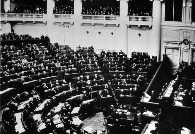 STATE DUMA (1905-17), the lower house of the Russian Parliament. It was established on 6 August 1905 as a deliberating representative body for preliminary discussions of legislative proposals. In accordance with the Manifesto of 17 October 1905, it received limited legislative rights (the right of veto was later given to the reformatted State Assembly in 1906). It was summoned on four occasions (the so-called first - fourth State Dumas). The First and the Second State Dumas were dissolved prematurely as a result of an inflexible opposition to the Government. After the dissolution of the Second State Duma a new election law, which considerably limited the electorate, was ratified on 3 June 1907. The State Duma consisted of the General Assembly, existing commissions (dealing with the budget, finances, State income and expenditure accounts, requests, editing, libraries, and executive activities), and provisional commissions. The State Duma's proceedings were directed by the President, which was elected for a one year term at a closed ballot and could report directly to the Emperor. The State Duma's proceedings took place at the Tauride Palace. The State Duma representatives of St. Petersburg were included V.K. von Anrep (Octobrist, third calling), A.A. Baryshnikov (progressive, fourth calling), S.P. Belyaev (Octobrist, third calling), L.A. Velikhov (cadet, fourth calling), M.M. Vinaver (cadet, first calling), I.V. Hessen (cadet, second calling), M.D. Kalugin (progressive, fourth calling), N.I. Kareev (cadet, first calling), E.I. Kedrin (cadet, first calling), A.M. Kolyubakin (cadet, third calling, excluded in 1909), N.N. Kutler (second calling), G.G. Lerche (Octobrist, third calling), P.N. Milyukov (cadet, third and fourth callings), V.D. Nabokov (cadet, first calling), L.I. Petrazhitsky (cadet, first calling), M.I. Petrunkevich (cadet, first calling), F.I. Rodichev (cadet, first - fourth callings), P.B. Struve (cadet, second calling), A.I. Shingarev (cadet, second - fourth callings). In the days of the February 1917 Revolution, the Provisional Committee of the State Duma attempted to control revolutionary activities, and later established the Provisional Government. The State Duma was dissolved officially on 6 October 1917 as a result of election for the Constituent Assembly. Reference: Члены Думы от С.-Петербургской губернии и города С.-Петербурга / Текст под ред. А. Д. Стопневича. СПб., 1906. D. N. Shilov.