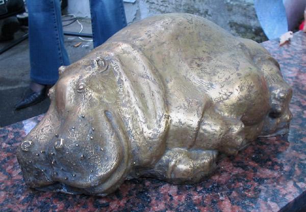 Памятник бегемоту открыт 14 октября 2005 г. в Парке современной скульптуры во дворе филологического факультета Санкт-Петербургского университета. Скульптор В. Петровичев. Материал: бронза. Размеры 5 на 40 см. Лит.: Романович Л. Бегемот из глубин подсознания // С.-Петерб. ведомости. - 2005. -15 окт. -С. 2; Козлов М. На филфаке поселился бегемот: он вдохновляет студентов на любовные подвиги // Смена. - 2005. - 17 окт. - С.3; Ойра С. Бегемот поможет студенткам // Комсомольская правда в Петербурге. - 2005. - 15 окт. -С.6; Аксенов Д. Толстая и добрая Тоня поселилась в университетском дворике // Мой район. Василеостровский. – 2005. – 21 окт. – С.5: ил.; Золотоносов М. Бегемот разинул рот: где и зачем в Петербурге продолжают ставить памятники и скульптуры // Город. – 2006. - № 14