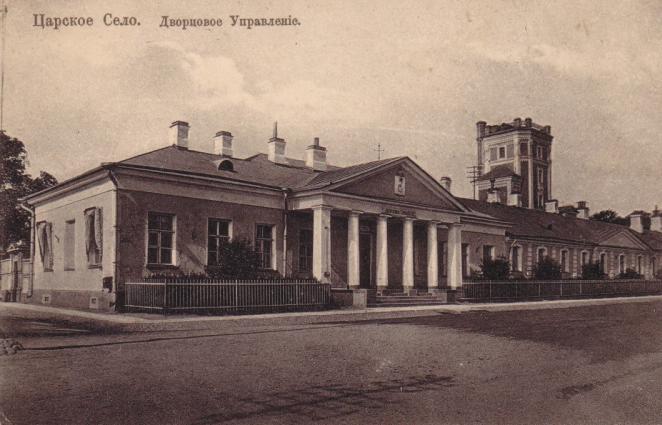 Царскосельское Дворцовое правлениеЗдание было построено в 1744 г. по проекту архитектора С. И. Чевакинского. Тогда здесь помещались вотчинная контора и контора строения Села Царского, дворцовые погреба с ледниками, квартиры придворнослужителей, гардмейстерские палаты и кладовые. Его фасад закрепил направление Средней улицы. В дальнейшем, при прокладке Леонтьевской улицы по проекту В. И. Гесте, часть конторского корпуса разобрали. В 1810 г. В. И. Гесте частично перестроил юго-восточное крыло конторских палат и возвел портик с фронтоном на главном фасаде, принадлежащем к лучшим образцам творчества архитектора. Композиция близка типовым проектам правительственных и административных зданий эпохи Александровского классицизма. Тимпан фронтона украсил барельеф с гербом Царского Села, а архитрав – металлическая доска с выгравированной надписью «Дворцовое правление». Над входом в глубине портика поместили барельеф с датой «1817», означающей время организации Канцелярии Главноуправляющего дворцовыми правлениями и города Царского Села. Контора дворцового правления находилась здесь до 1917 г. Северо-западный корпус со стороны Певческого переулка арх. В. П. Стасов перепланировал в 1825 г. для нужд архива, экзерцирзала для хранения амуниции, выполнил ремонт погребов с ледниками. Впоследствии это крыло надстроили вторым этажом, причем в архитектуре фасада было повторено решение С. И. Чевакинского. В результате перестроек единое здание воспринимается как состоящее из трех примыкающих друг к другу корпусов. До 1917 г. в конторе дворцового правления выдавались билеты для осмотра Царскосельского дворца и парков. После национализации императорского имущества в 1918 г. Царскосельское правление было ликвидировано, его архив передали в государственное хранилище, Российский государственный исторический архив. Конторские и архивные помещения, расширенные со стороны двора, заняла городская библиотека, остальные части здания продолжали использоваться под жилье и типографию. Герб Царского Села во фронтоне сбили. В настоящее время помещения используются многочисленными организациями. Г. В. Семенова Авторы