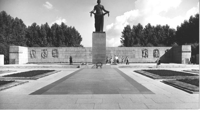 Пискаревское мемориальное кладбище, памятникРубрикатор / Памятники Санкт-Петербурга/1917 – 1991 Архитекторы: Васильев Александр Викторович (1913-1976) Левинсон Евгений Адольфович (1894-1968) Скульпторы: Исаева Вера Васильевна (1898-1960) Таурит Роберт Карлович (1906-1969) Вайнман Моисей Абрамович (1913-1973) Каплянский Борис Евсеевич (1903-1985) Малахин Абрам Лазаревич (1901-1970) Харламова Мария Матвеевна (род. 1917) Дмитриев Евгений Кузьмич (род. 1927) Авторы текстов: Берггольц Ольга Федоровна (1910-1975) Дудин Михаил Александрович (1916-1993) Открыт 9 мая 1960 г. Материалы: бронза — скульптура «Родина-мать»; гранит серый — мемориальная стена с рельефами, камни на торцах могильных холмов, чаша Вечного огня; гранит, бетон — мощение; мозаика — бассейн; мрамор, доломит — павильоны-пропилеи. Надписи: на фризе левого (западного) павильона: Вам беззаветным защитникам нашим / Память о вас навсегда сохранит Ленинград благодарный / Жизнью своею потомки обязаны вам / Бессмертная слава героев умножится в славе потомков; на фризе правого (восточного) павильона: Жертвам блокады великой войны / Вечен ваш подвиг в сердцах поколений грядущих / Гордым героям бессмертная слава / Жизнью своею равненье на павших героев держи; на мемориальной стене: Здесь лежат ленинградцы. /Здесь горожане – мужчины, женщины, дети. / Рядом с ними солдаты-красноармейцы. / Всею жизнью своею / они защищали тебя, Ленинград, / колыбель революции. / Их имен благородных мы здесь перечислить не сможем. / Так их много под вечной охраной гранита. / Но знай, внимающий этим камням, / никто не забыт и ничто не забыто. В город ломились враги, в броню и железо одеты, / но с армией вместе встали / рабочие, школьники, учителя, ополченцы. / И все, как один, сказали они: / скорее смерть испугается нас, чем мы смерти. / Не забыта голодная, лютая, темная / зима сорок первого – сорок второго, / ни свирепость обстрелов, / ни ужас бомбежек в сорок третьем. / Вся земля городская пробита. Ни одной вашей жизни, товарищи, не позабыто. / Под непрерывным огнем с неба, с земли и с воды / подвиг свой ежедневный / вы свершали достойно и просто. / И вместе с отчизной своей / вы все одержали победу. / Так пусть же пред жизнью бессмертною вашей / на этом печально-торжественном поле / вечно склоняет знамена народ благодарный, / Родина-мать и город-герой Ленинград Пискаревское мемориальное кладбище — один из символов Санкт-Петербурга, напоминание о беспримерном подвиге жителей города-героя Ленинграда, выдержавших 900-дневную вражескую блокаду 1941—1944 гг. На Пискаревском кладбище в дни блокады было похоронено свыше 470 тысяч мирных жителей и 50 тысяч воинов Ленинградского фронта. Конкурс проектов мемориала состоялся в феврале 1945 г. В результате двух туров был одобрен проект архитектора А. В. Васильева. В дальнейшей работе принял участие архитектор Е.А. Левинсон. В 1948 г. утвержден новый совместный проект, в соответствии с которым в центре композиции появилась скульптура «Родина-мать», возвышающаяся на постаменте над мемориальной стеной. Центральную фигуру и рельефы на торцах мемориальной стены создали скульпторы В. В. Исаева и Р. К. Таурит, бригада скульпторов работала над шестью горельефами, изображающими ленинградцев-блокадников. Важную смысловую роль играют поэтические тексты для памятника, созданные О. Ф. Берггольц (на мемориальной стене) и М.А. Дудиным (на фризах пропилеи). Строител