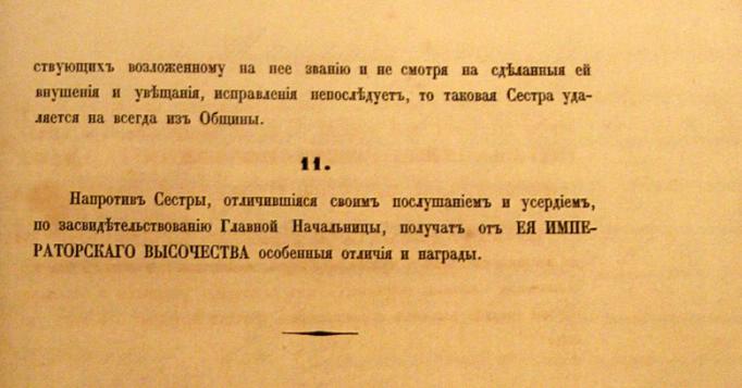 КРЕСТОВОЗДВИЖЕНСКАЯ ОБЩИНА СЕСТЕР МИЛОСЕРДИЯРубрикатор / Благотворительность в Петербурге/История/Попечение о воинах и жертвах войны Рубрикатор / Благотворительность в Петербурге/История/Попечение о народном здравии Временный устав общины был утвержден императором Николаем I 25 октября 1854, а 5 ноября в церкви Михайловского дворца (резиденции вел. кнг. Елены Павловны) состоялась торжественная церемония посвящения первых сестер милосердия. Основательница выделила на содержание общины 200 000 руб.; началось и поступление частных пожертвований. 9 ноября первая группа из 28 сестер, вслед за докторами Н. И. Пироговым (он возглавил в Крыму госпитальное дело), А. Обермиллером, В. С. Сохраничевым и фельдшером И. Калашниковым, отбыла в Севастополь. В дальнейшем в район боевых действий выехало еще 5 групп, а всего за время военных действий там побывало 250 сестер общины, в том числе добровольно рекрутированных сверх штата. Среди них были патриотически настроенные женщины разных слоев общества – от аристократок до малограмотных крестьянок. Первой начальницей (сестрой-настоятельницей) общины стала вдова капитана Александра Петровна Стахович, которая, однако, слабо справлялась со своими обязанностями. 20 октября 1855 ее сменила на этом посту более энергичная и опытная Екатерина Александровна Хитрово, начальница «сердобольных вдов» в Одессе. 2 февраля 1856, когда та умерла от тифа, руководство общиной, по рекомендации Н. И. Пирогова, перешло к Екатерине Михайловне Бакуниной, а ее заместительницей стала Елизавета Петровна Карцова. Самоотверженная и героическая работа сестер общины в Крыму вошла в историю и была высоко оценена современниками. Многие из них были награждены учрежденной императрицей медалью «Для сестер милосердия в Крыму». Кроме того по повелению вел. кнг. Елены Павловны были учреждены бронзовые и серебряные медали «Для сестер Крестовоздвиженской общины в Крыму» и «Для сестер Крестовоздвиженской общины в Финляндии» (там в военные годы были устроены госпитали для раненых). Имена отличившихся сестер увековечили на бронзовой доске, находившейся в храме общины. С окончанием войны сверхштатные сестры общины были уволены, а 80 сестер по возвращении в С.-Петербург выразили желание продолжить работу в мирное время. Эта идея нашла поддержку военного министра Н. О. Сухозанета, который дал разрешение на работу сестер в Кронштадтском и Калинкинском военно-морских госпиталях, а для практических занятий посещать Петербургский сухопутный госпиталь. В дальнейшем сестры общины работали во многих других лечебных заведениях С.-Петербурга. В их обязанности входил контроль за качеством и количеством пищи, за чистотой палат и белья; они делали перевязки, раздавали лекарства, обихаживали лежачих больных, обязательно присутствовали при составлении больными духовных завещаний. Община управлялась специальным Комитетом, находящимся в ведении вел. кнг. Елены Павловны. Его последовательно возглавляли Н. И. Пирогов, кн. В. Ф. Одоевский, д.с.с. Н. А. Ермаков. Сестрой-настоятельницей до 1860 оставалась Е. М. Бакунина, а после ее ухода, до 1867, – Е. П. Карцова. Обе были вынуждены оставить пост, не примирившись с тем, что вел. кнг. Елена Павловна пыталась превратить общину в монашеский орден, придать ей формально-религиозное направление. Община существовала на средств